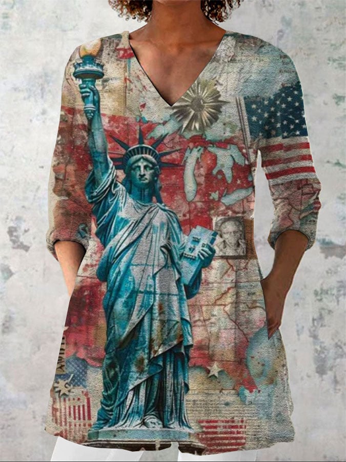 Women's Casual Cotton and Linen Floral Independence Day Shirt