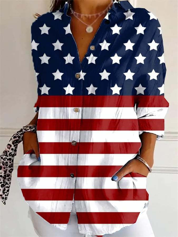 Women's Casual Cotton and Linen Independence Day Shirt