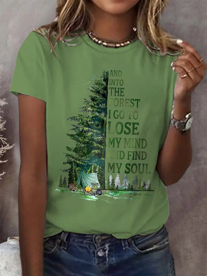 Women's Casual Fashion Forest Camping Print T-Shirt