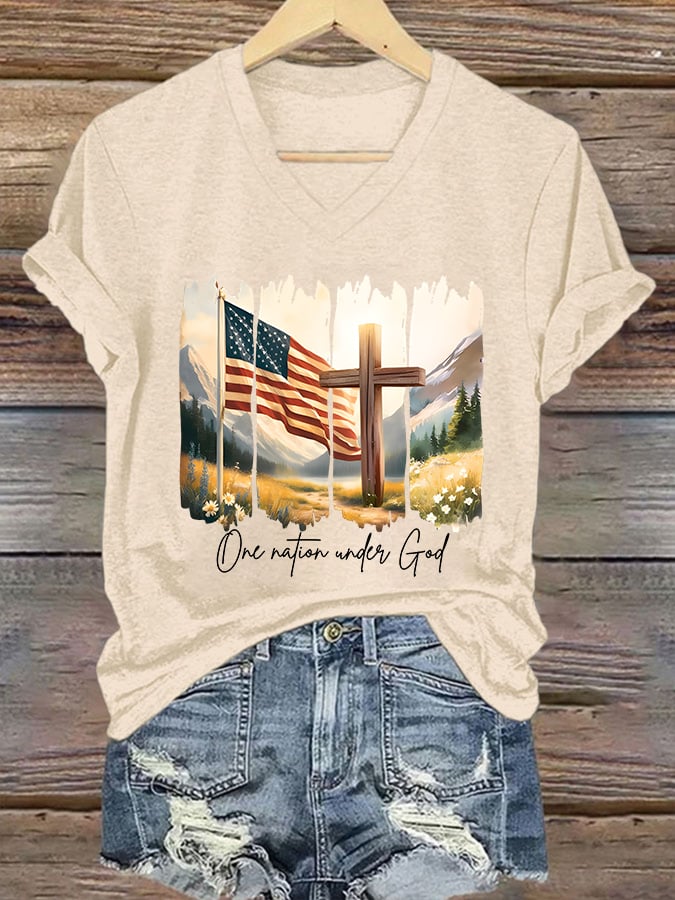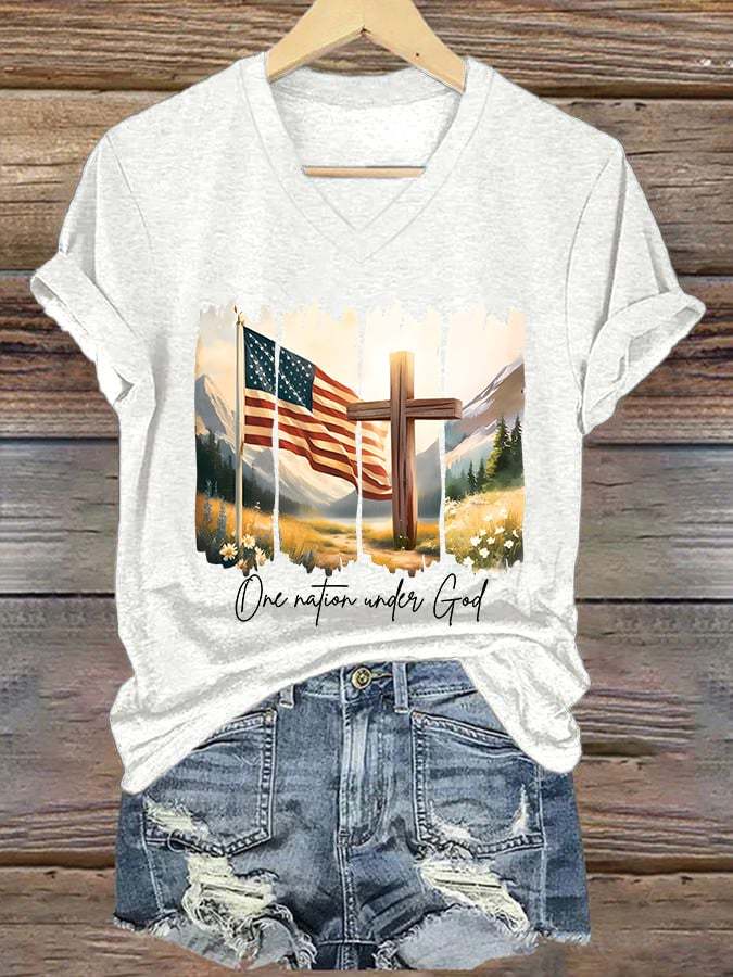 Women's Casual Independence Day Graphic Print V-Neck Short Sleeve T-Shirt