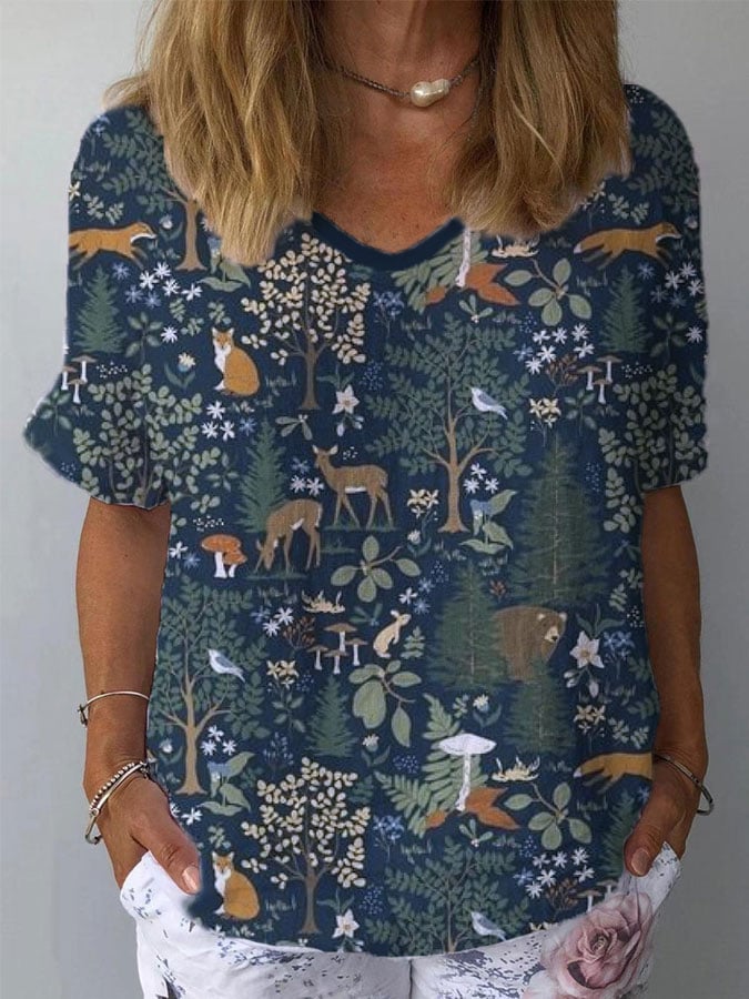 Women's Cotton and Linen Forest Park Printed Short Sleeve