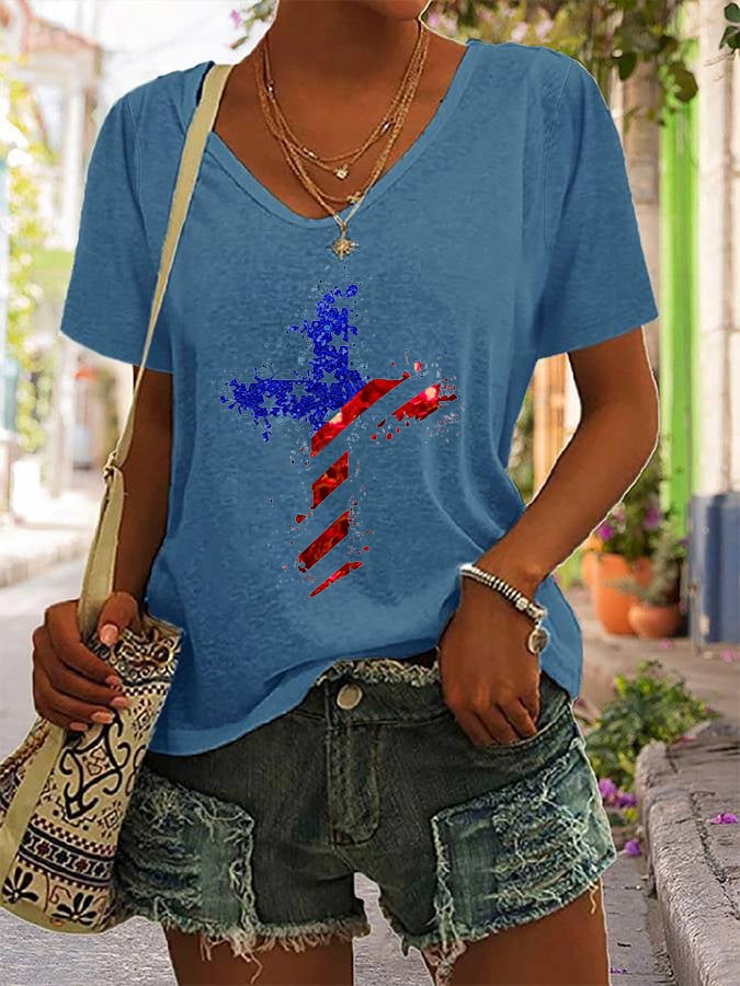 🔥Last Day 49% Off🔥Women's Cross Flag Print T-Shirt