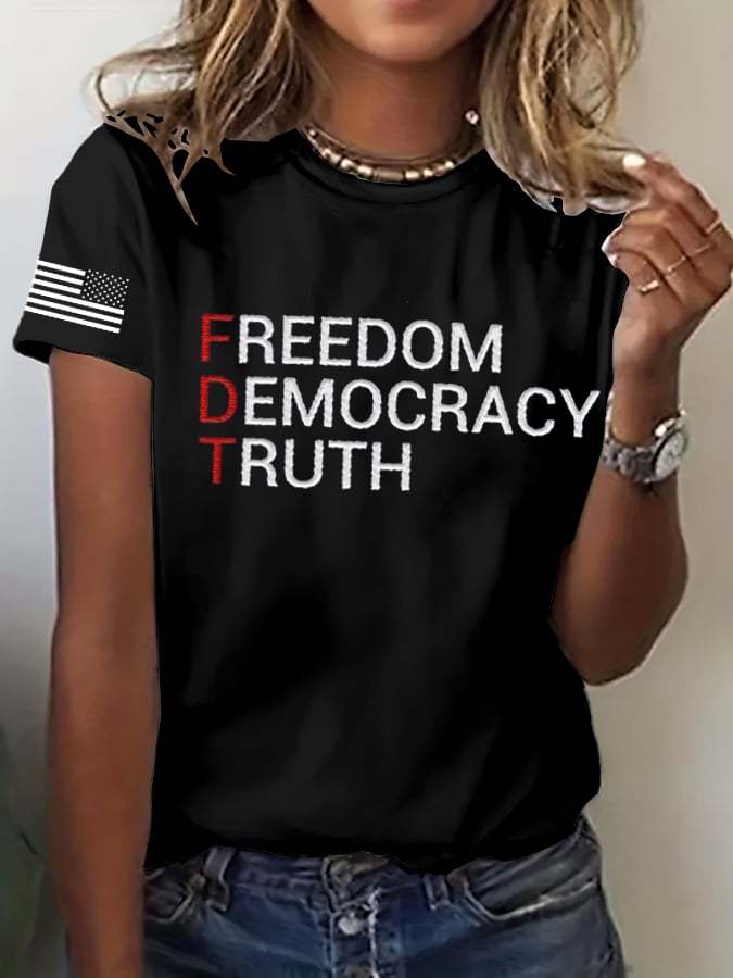 Women's FDT “Freedom Democracy Truth” Printed Casual T-Shirt Women's FDT “Freedom Democracy Truth” Printed Casual T-Shirt Women's FDT “Freedom Democracy Truth” Printed Casual T-Shirt