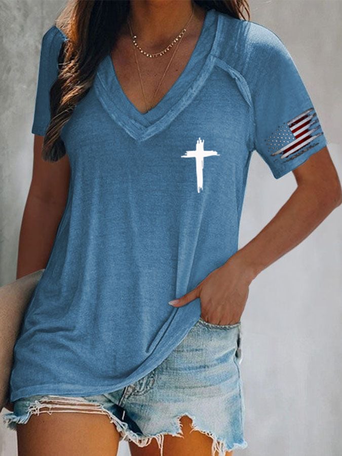 🔥Last Day 49% Off🔥Women'S Flag Cross Print T-Shirt