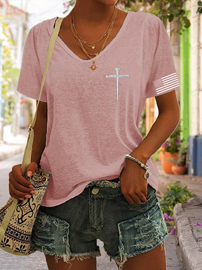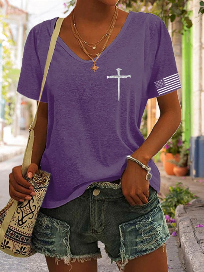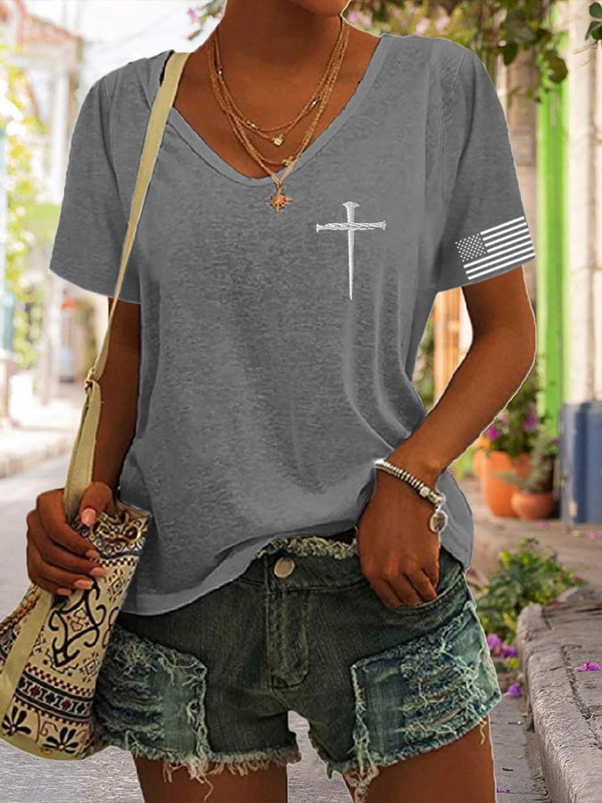 🔥Last Day 49% Off🔥Women'S Flag Cross Print T-Shirt