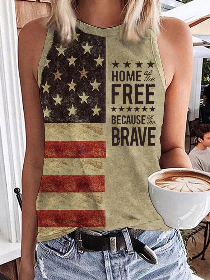 🔥Last Day 49% Off🔥Women's Home Of The Free Because Of The Brave Print Sleeveless T-Shirt