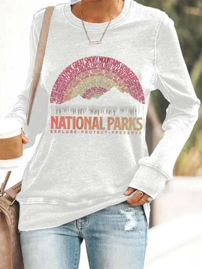 Women's Hotspots 63 National Parks Explore, Protect, And Preserve Printed Casual Sweatshirts