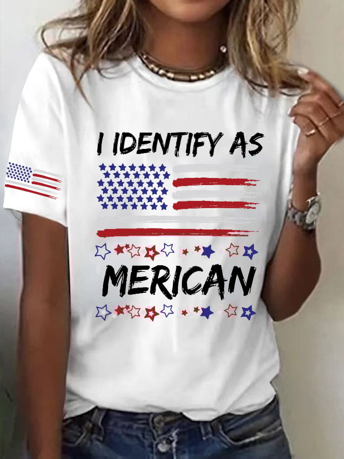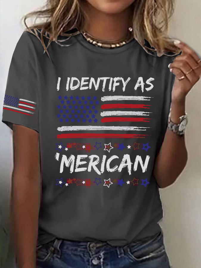 Women's I Identify As American Print Round Neck T-shirt