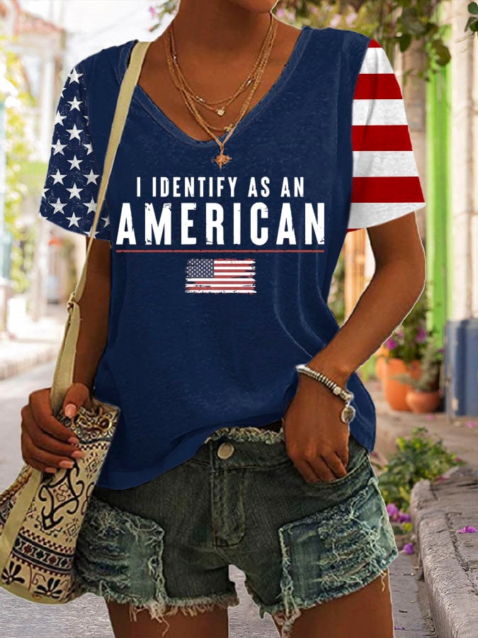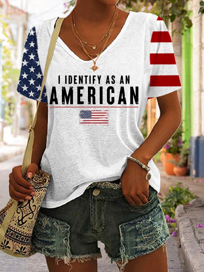 Women's I Identify As An American Print V Neck T-shirt