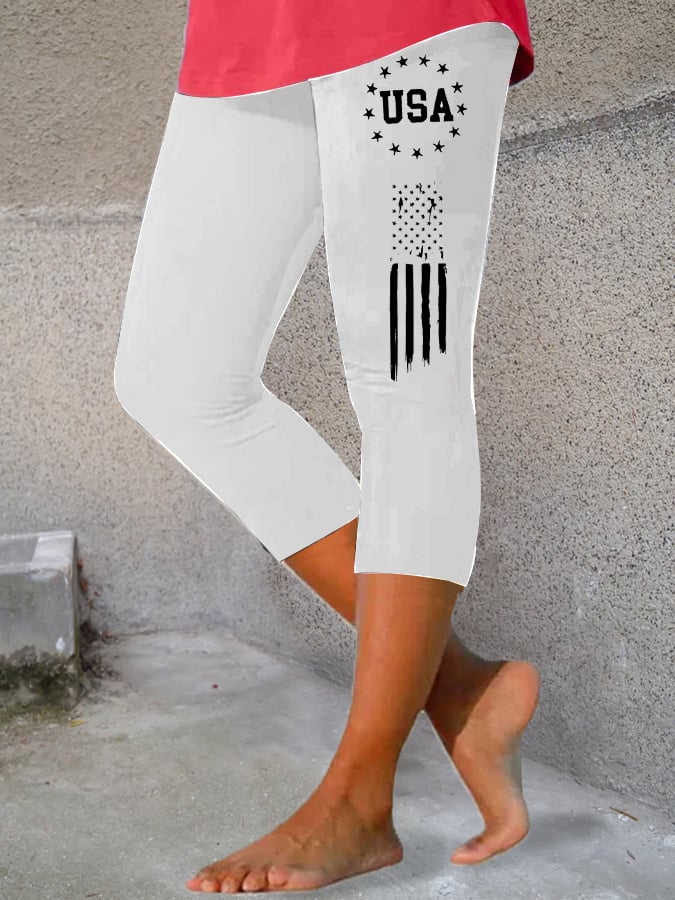 Women's Independence Day American Flag USA Print Leggings