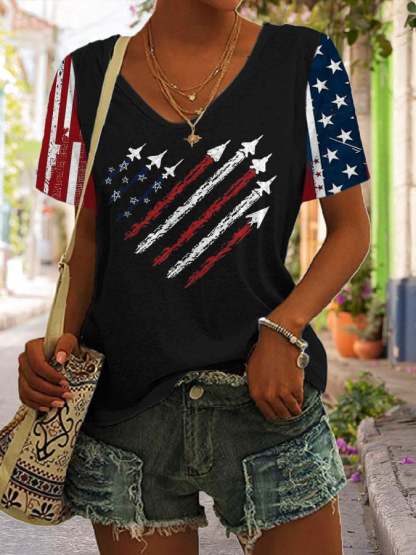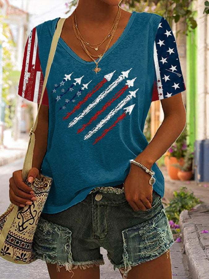 Women's Independence Day Art Print V Neck T-Shirt