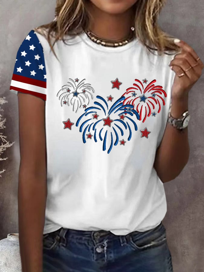 Women's Independence Day Fireworks Print Short Sleeve T-Shirt