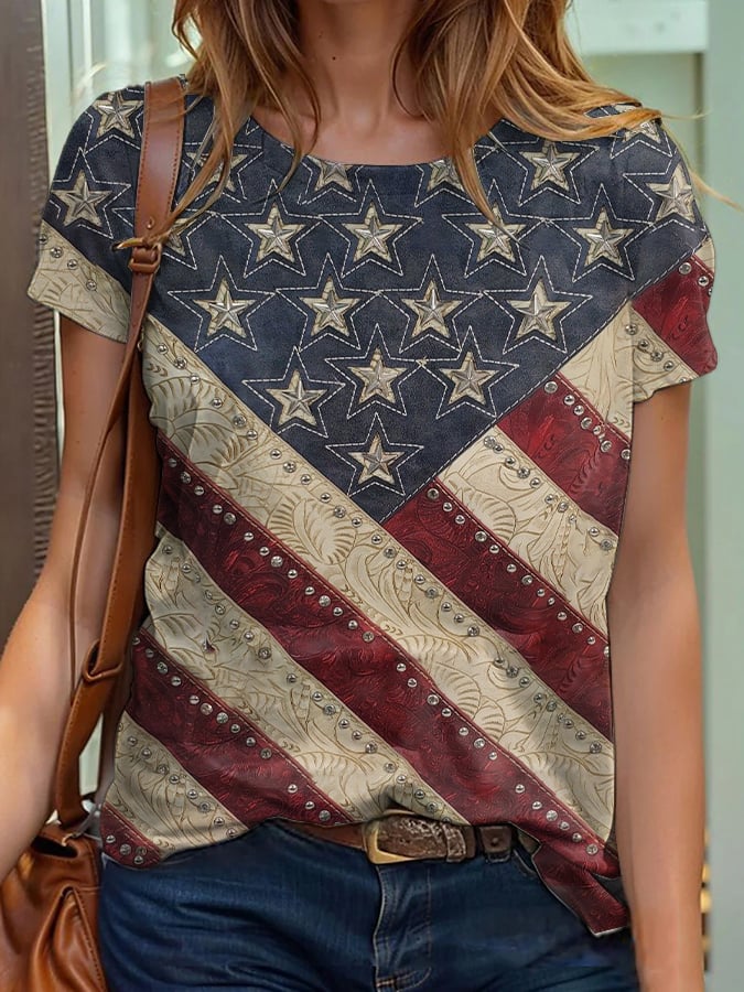 🔥Last Day 49% Off🔥Women's Independence Day Flag Denim Blue Print T-Shirt