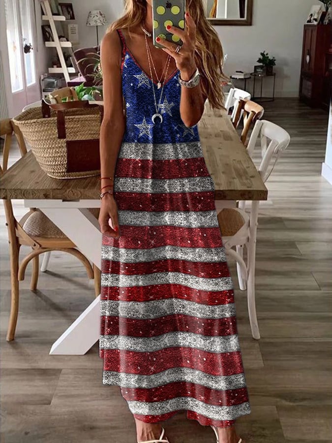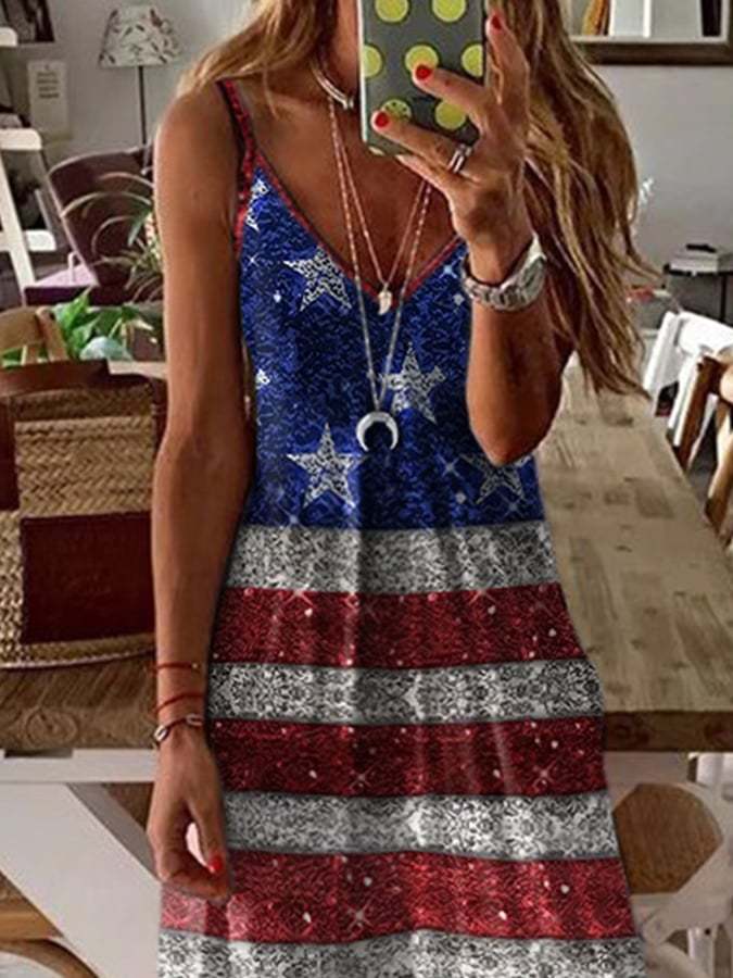 🔥Last Day 49% Off🔥Women's Independence Day Print Suspender Dress