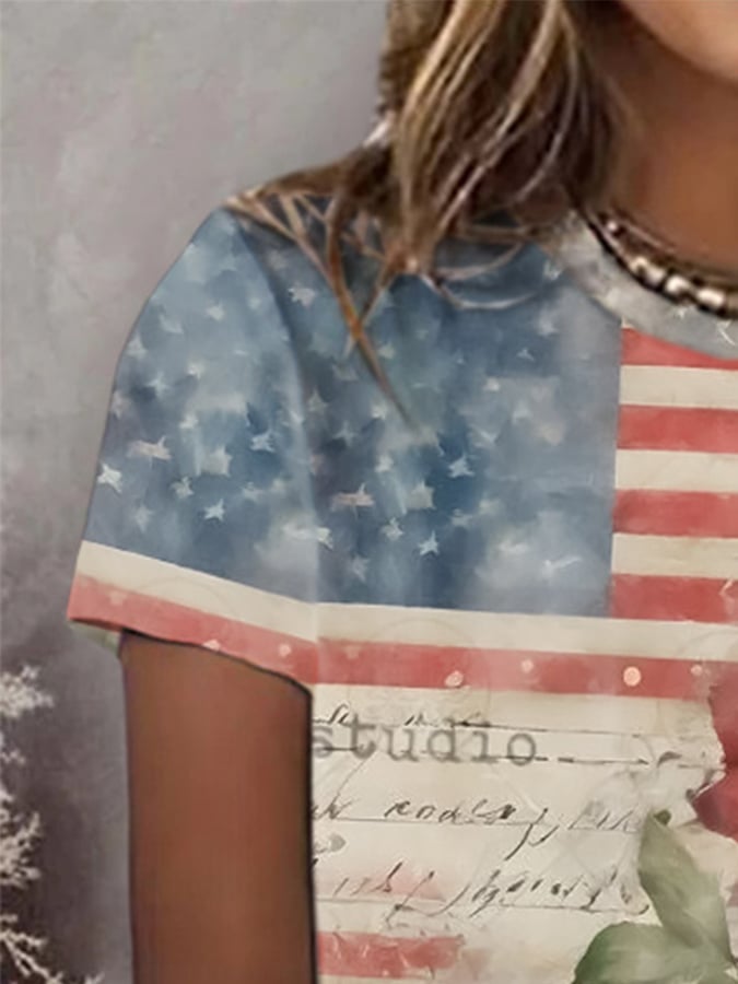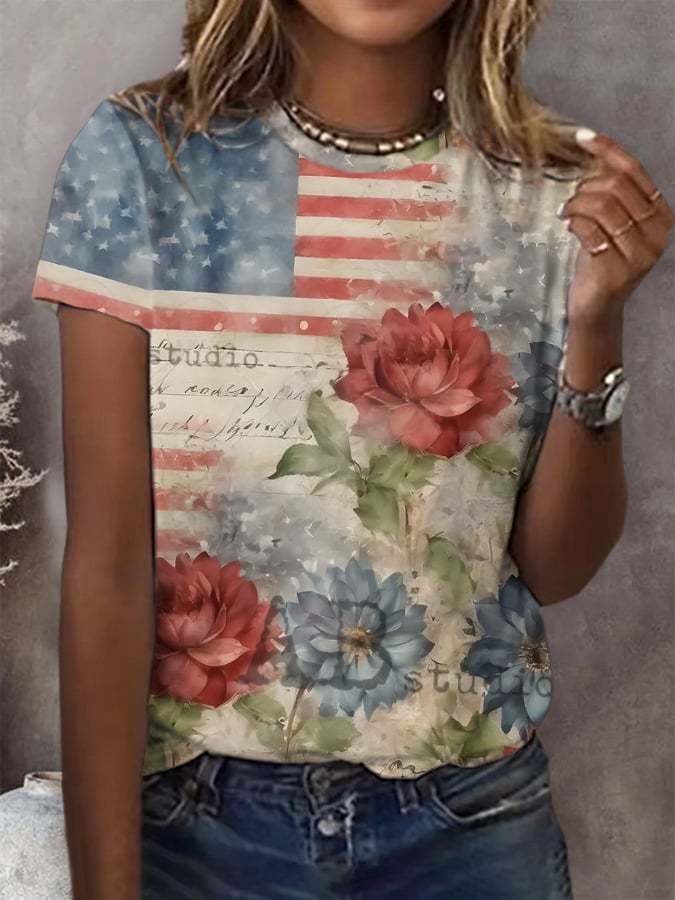 🔥Last Day 49% Off🔥Women'S Independence Day Round Neck Retro Floral Print Casual T-Shirt