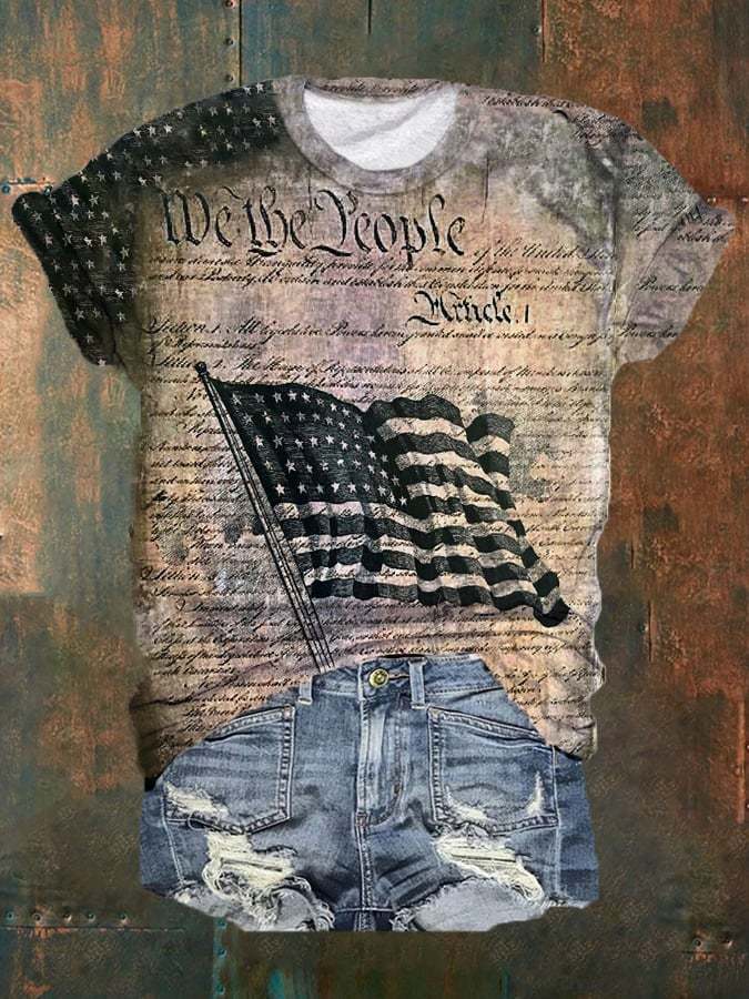Women's Independence Day We The People Primitive American Flag Print Tee