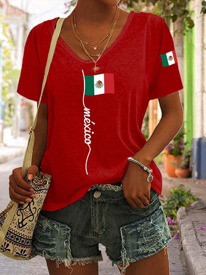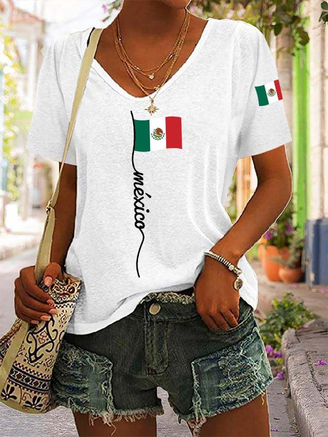 🔥Last Day 49% Off🔥Women's Mexican Independence Day Mexican Flag Casual V-Neck Tee
