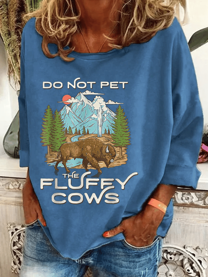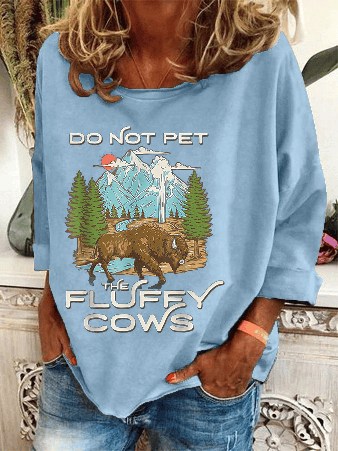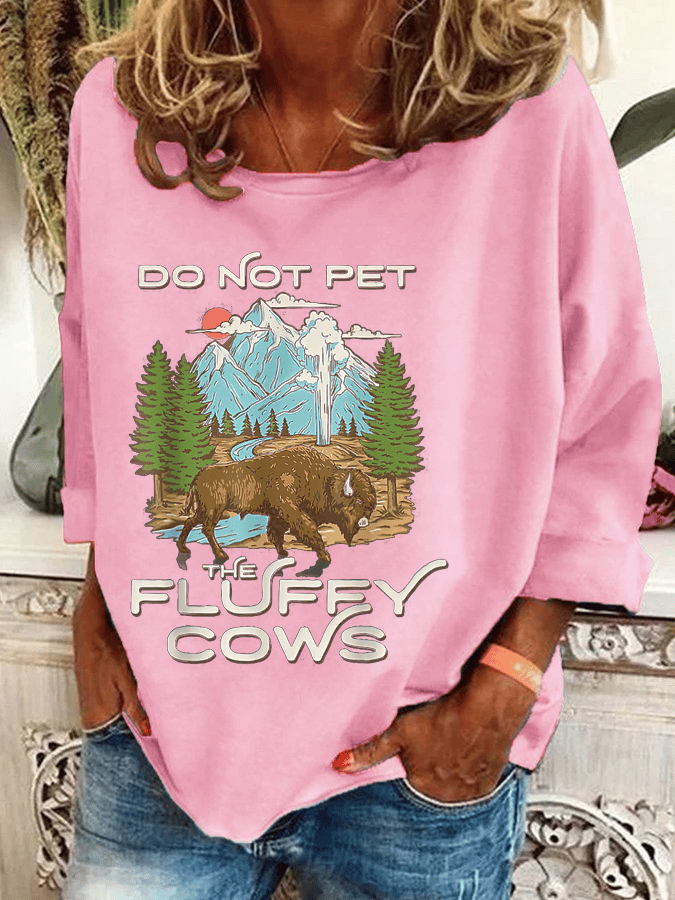 Women's National Park Do Not Pet Flufey Cows Heat Transfer Casual Sweatshirt