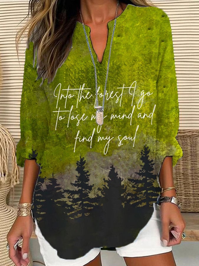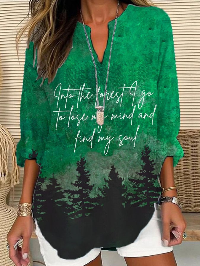 Women's National Park Print Casual Long Sleeve V-Neck Shirt