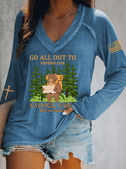 Women's National Park Protection Print V-Neck T-Shirt