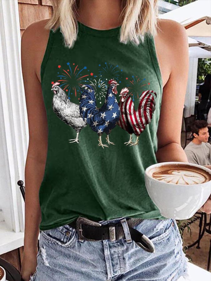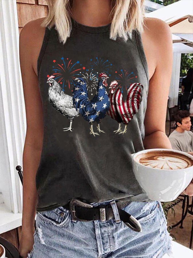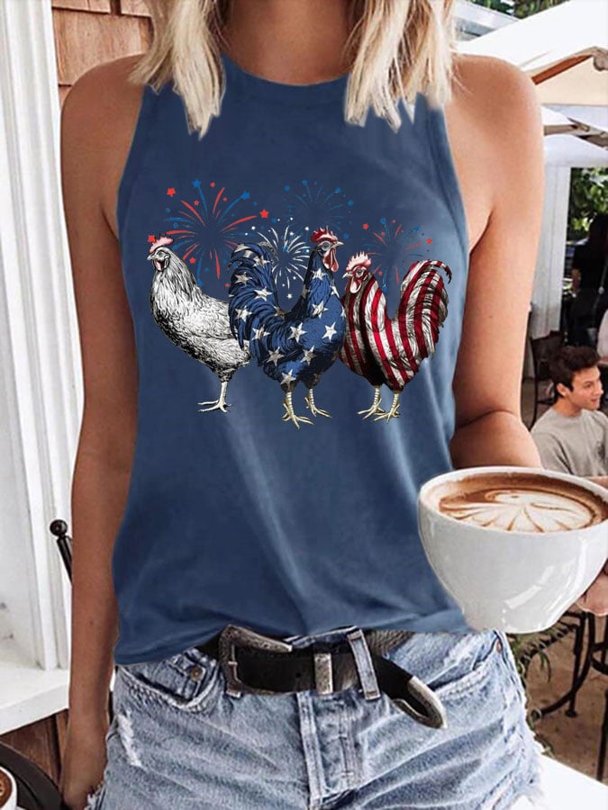 Women's Patriotic USA Chicken Print Tank Top