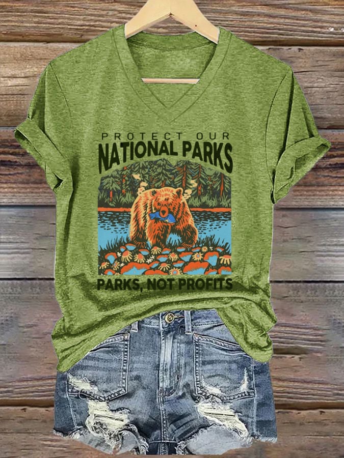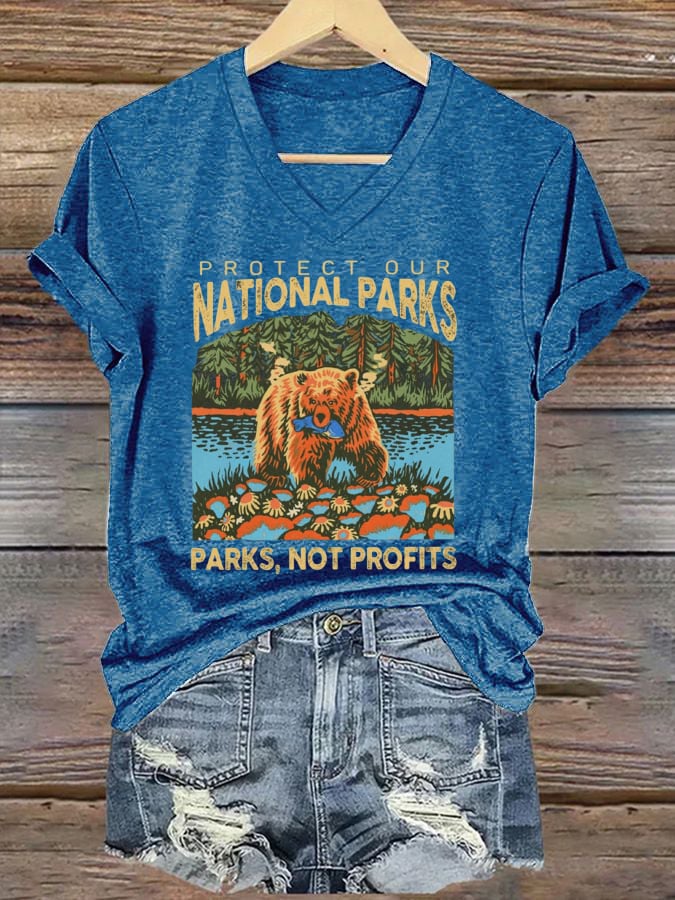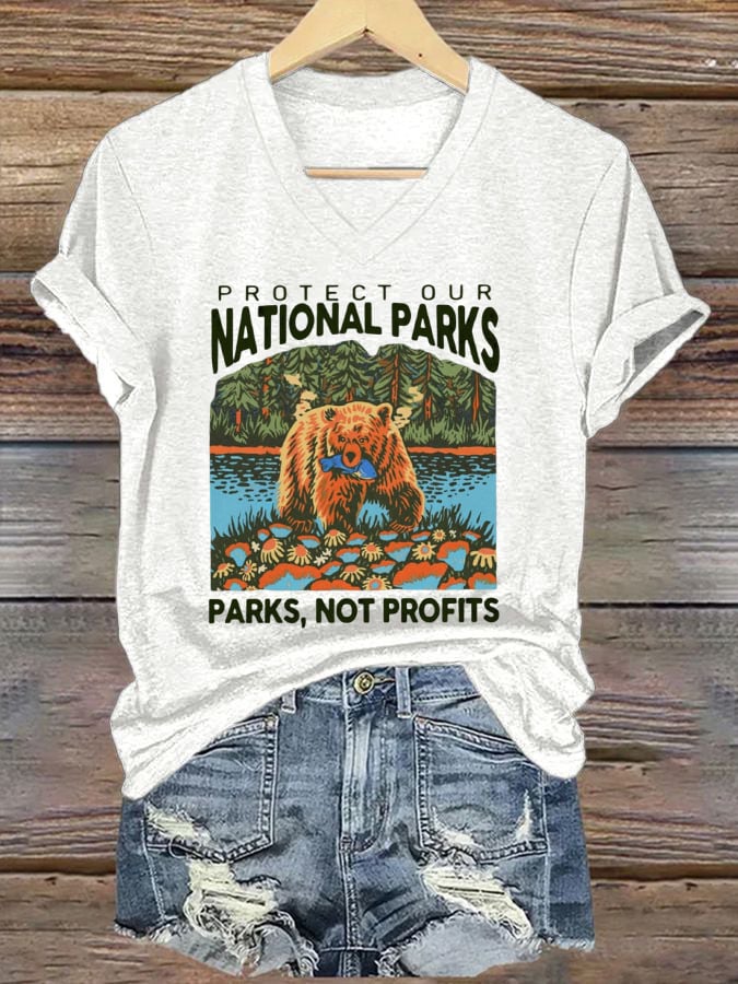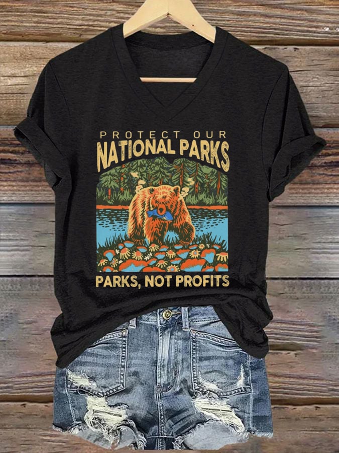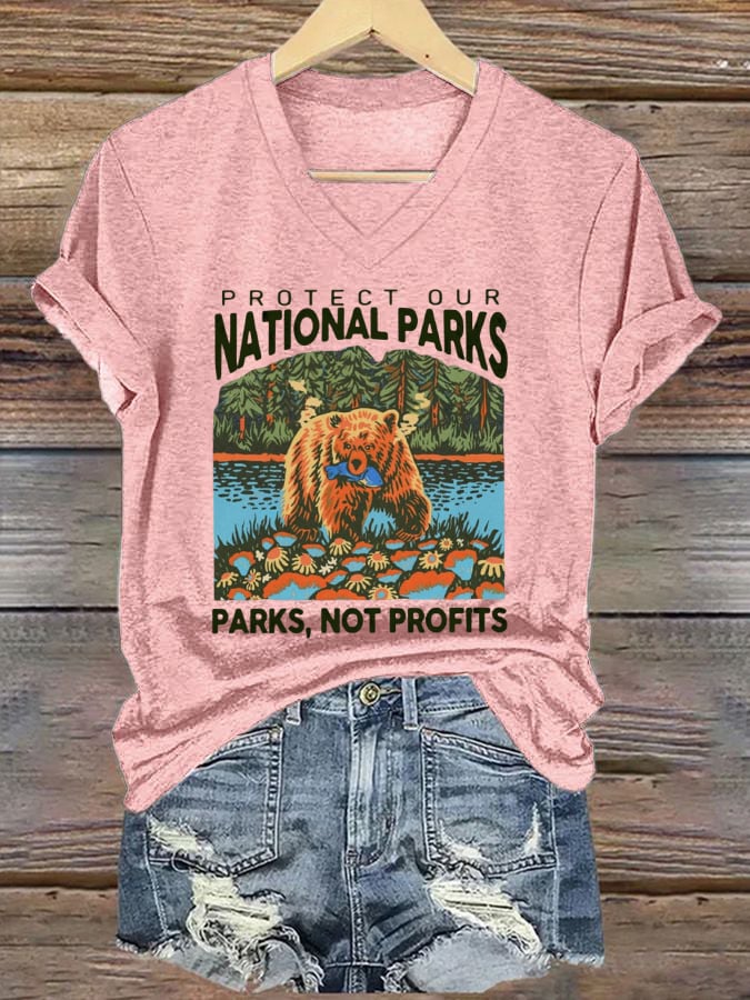 Women's Protect National Parks Print V-Neck T-Shirt