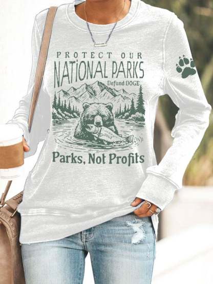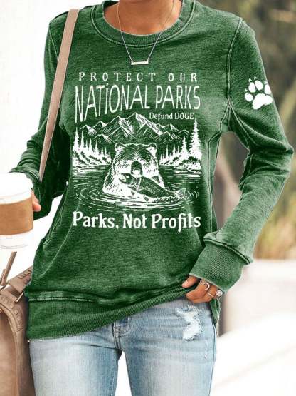 Women's Protect Our National Parks Print Round Neck Sweatshirt
