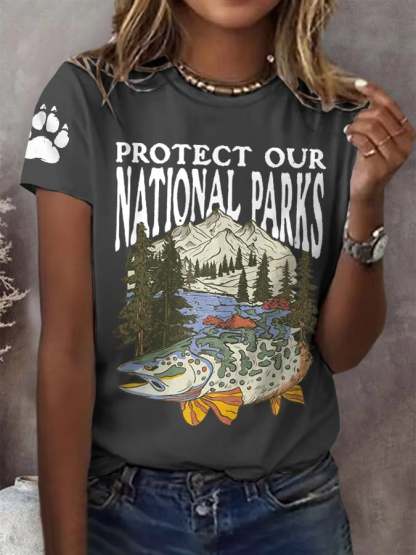 Women's Protect Our National Parks Print Round Neck T-Shirt