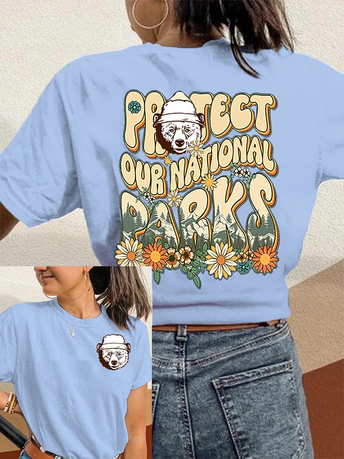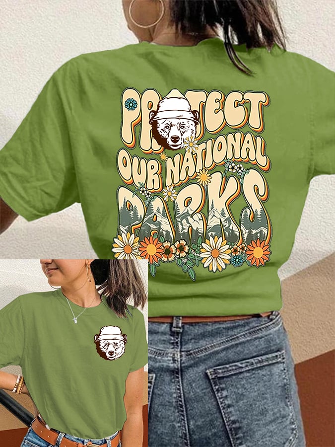 Women's Protect Our National Parks Print Round Neck T-Shirt