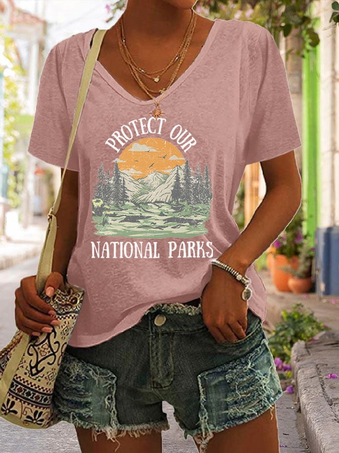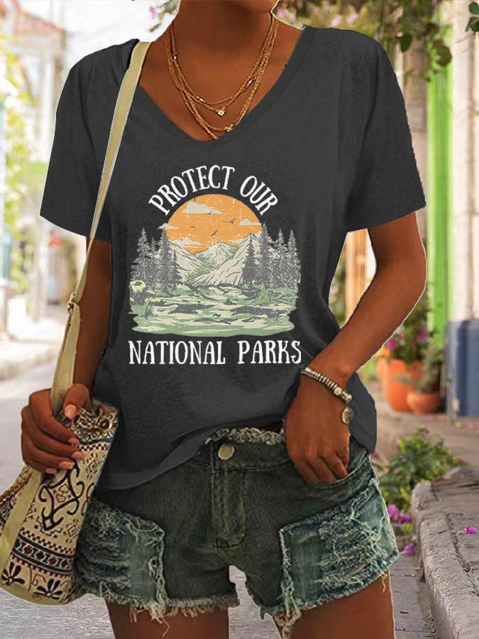 Women's Protect Our National Parks Printed Short-Sleeved T-Shirt
