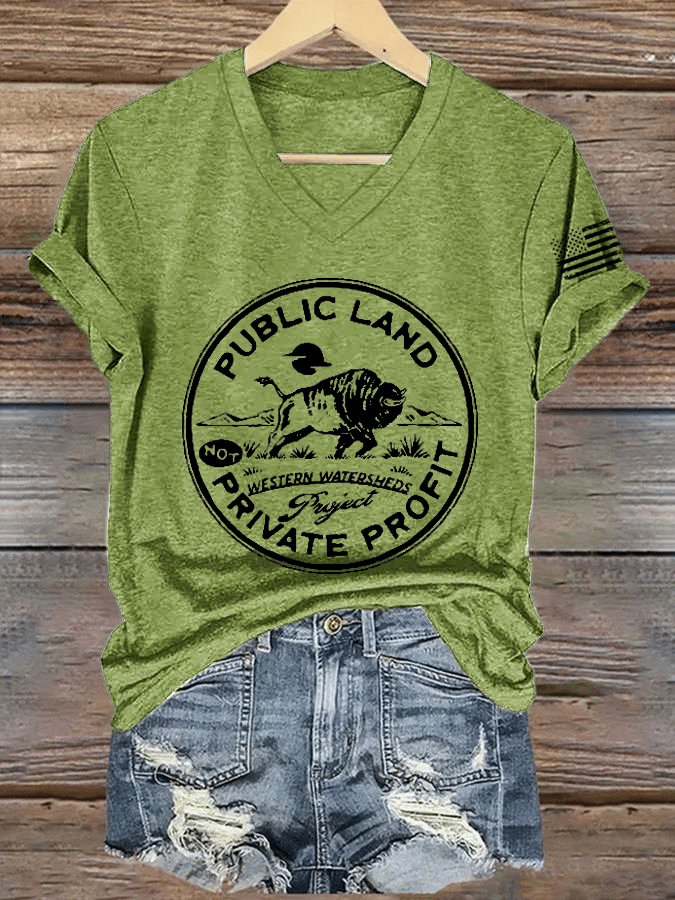 Women's Public Land Not Private Profit Print V-Neck T-Shirt