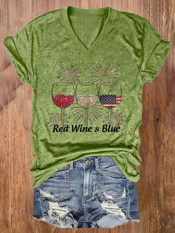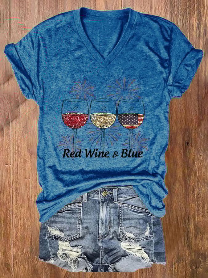 🔥Last Day 49% Off🔥Women's Red Wine and Blue Print T-shirt
