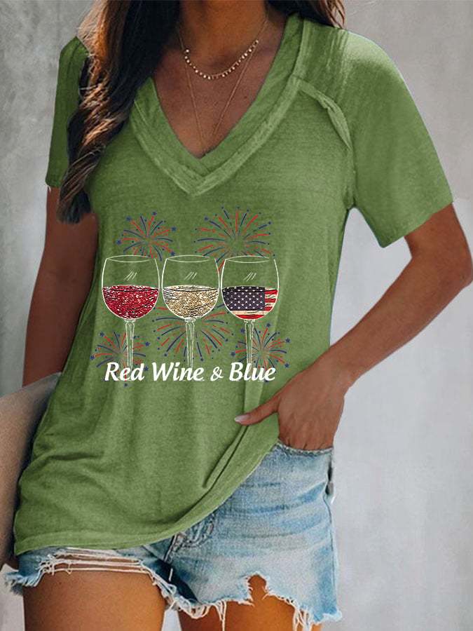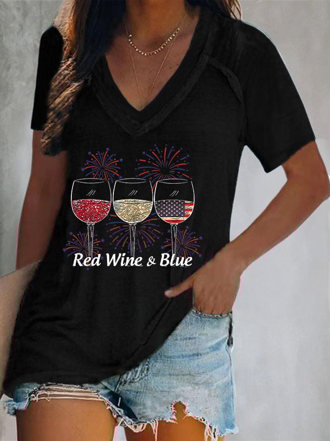 Women's Red Wine and Blue Print T-Shirt