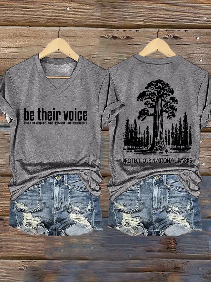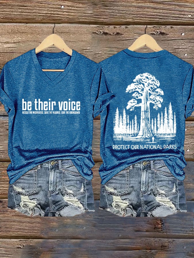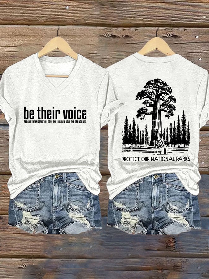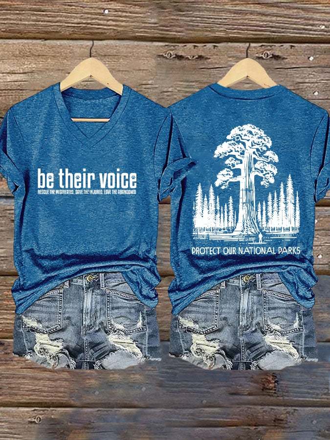 Womens Retro Be Their Protecting National Parks Voice Print T-Shirt