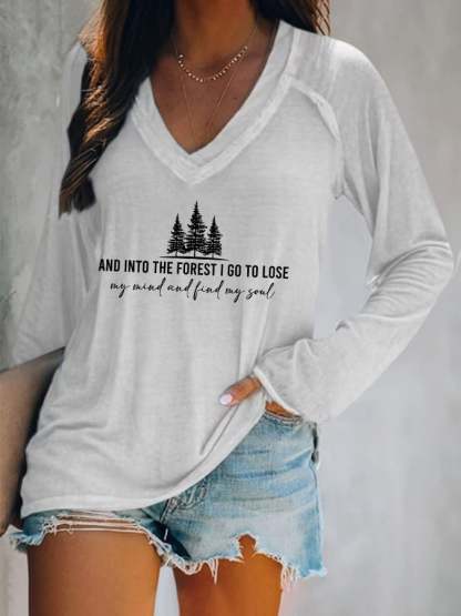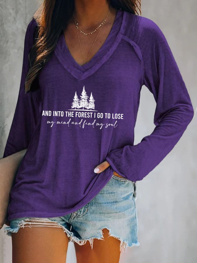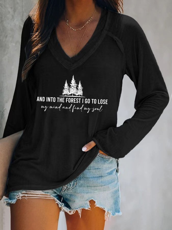 Women's Retro Hiking Outdoors Camping And Into The Forest I Go To Lose My Mind And Find My Soul Printed Casual Long Sleeve T-Shirt