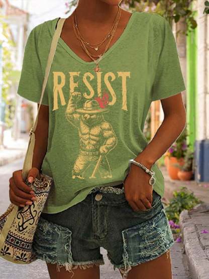 Women's Support National Parks Print V Neck Casual T-Shirt