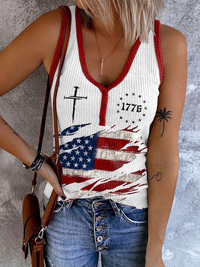 Women's Vintage Flag Independence Day Printed Casual Tank Top