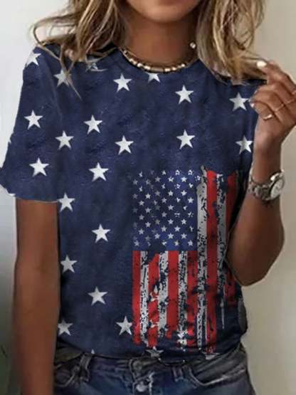 Women's Vintage Flag Print Round Neck Casual T-Shirt