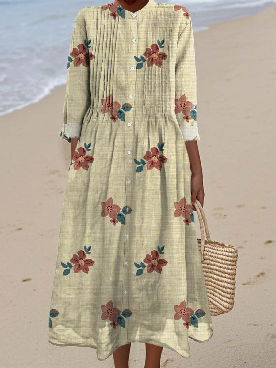 Women's Vintage Floral Pattern Art Print Cotton Dress