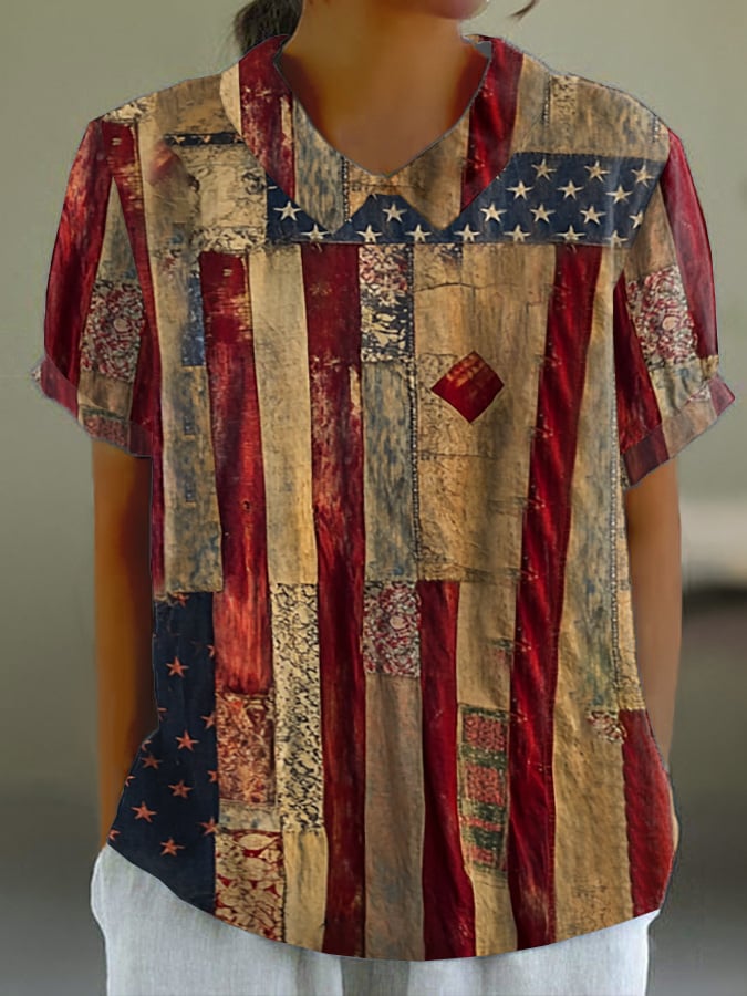 Women's Vintage Independence Day USA Flag Print Shirt