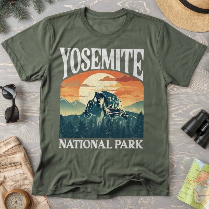 Show off your love of California and Yosemite's iconic Half Dome, with our Vintage Yosemite National Park Shirt! This shirt makes a great gift for that mountain climber or adventure enthusiast in the family, and is all about embracing the rugged beauty of the High Sierra! It features a custom sunset design that showcases the incredibly unique peak of Half Dome which the park is known so well for! The "comfort colors" garment-dyed vintage cotton fabric has that comfy, lived-in feel, that's like a hug every time you put it on! Now you can take a bit of Yosemite with you wherever you go! Grab one now and hit the trail!
