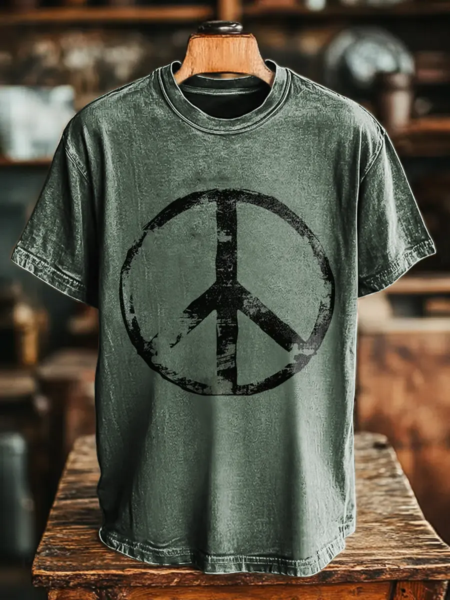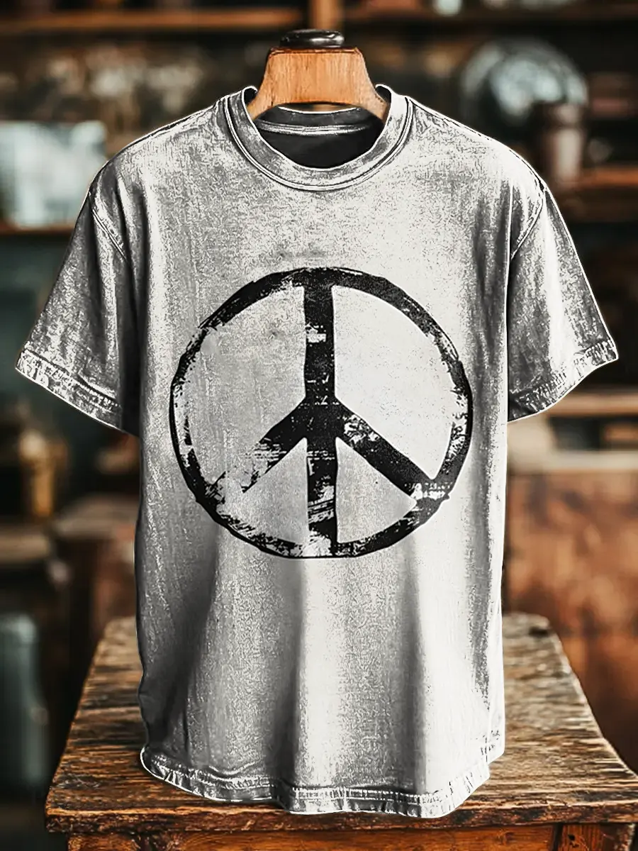 Hippie Weathered Look Unisex Vintage Art Print Casual T-shirt