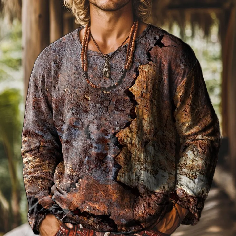 Ethnicity Texture Abstraction Brown Vintage Print Casual Cotton Shirt