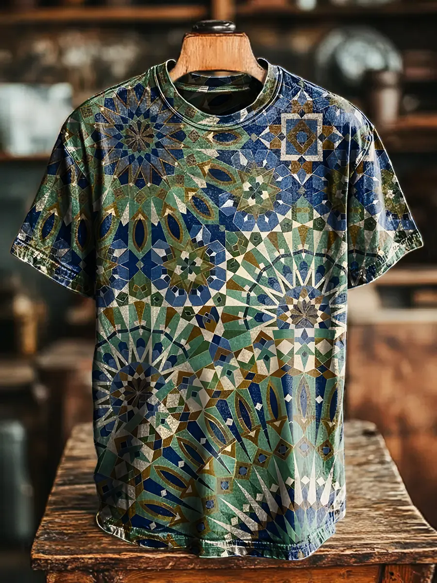 Ethnicity Kaleidoscope Color Blocks Unisex Vintage Art Print Casual T-shirt