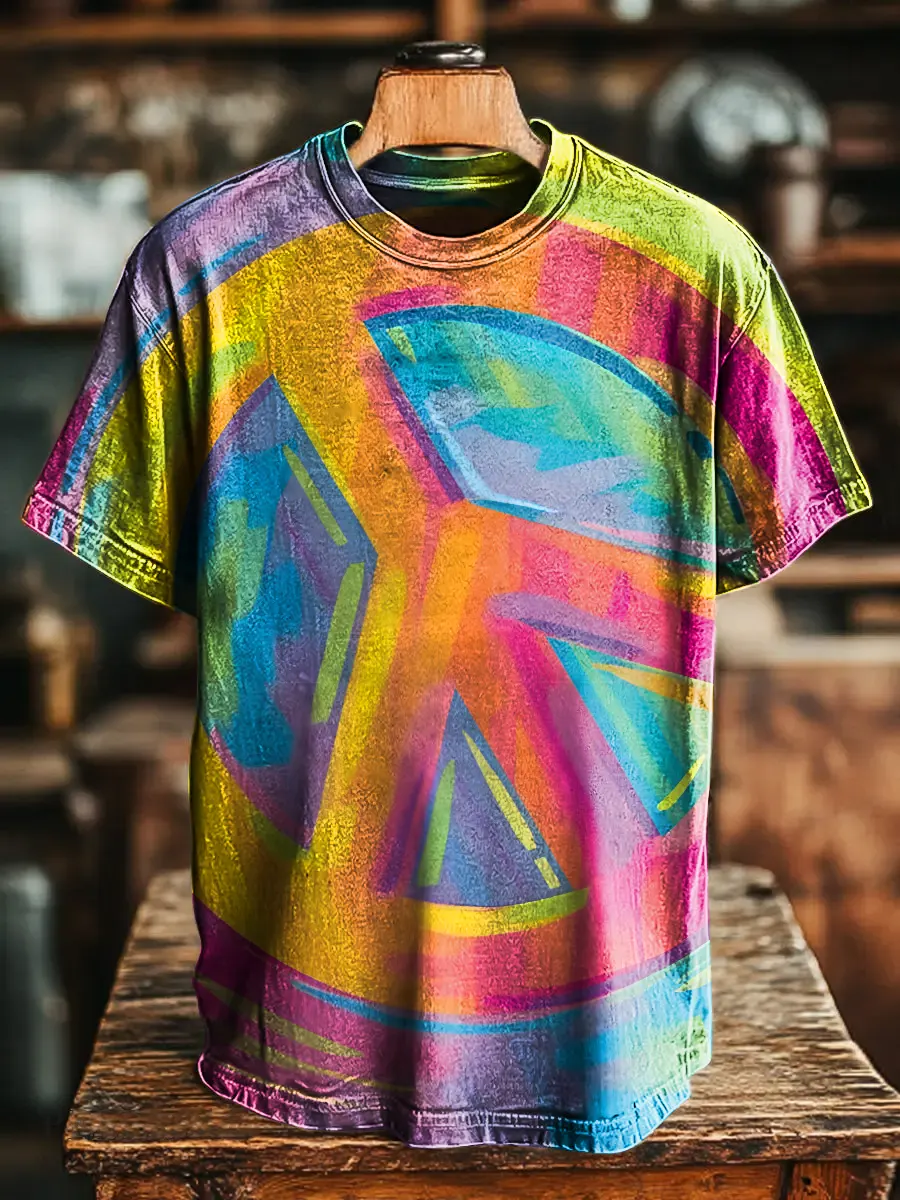 Hippie Colorful Gradation Unisex Vintage Art Print Casual T-shirt