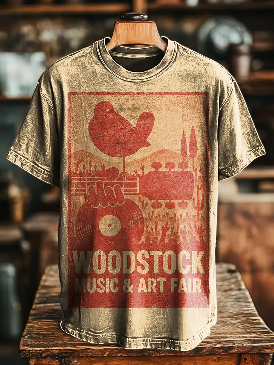 Hippie Music Woodstock Unisex Vintage Art Print Casual T-shirt