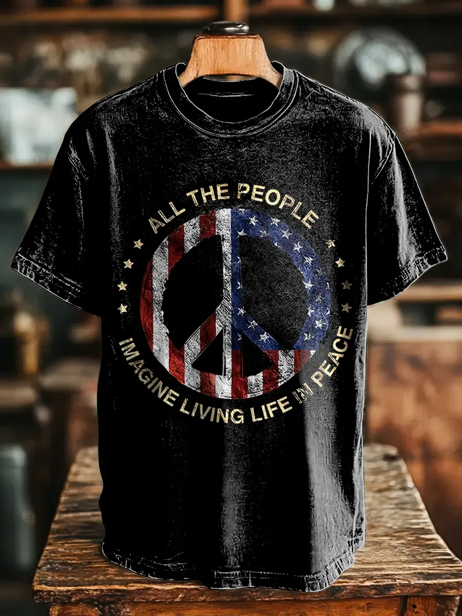 Hippie Peace Striped Flag Unisex Vintage Art Print Casual T-shirt