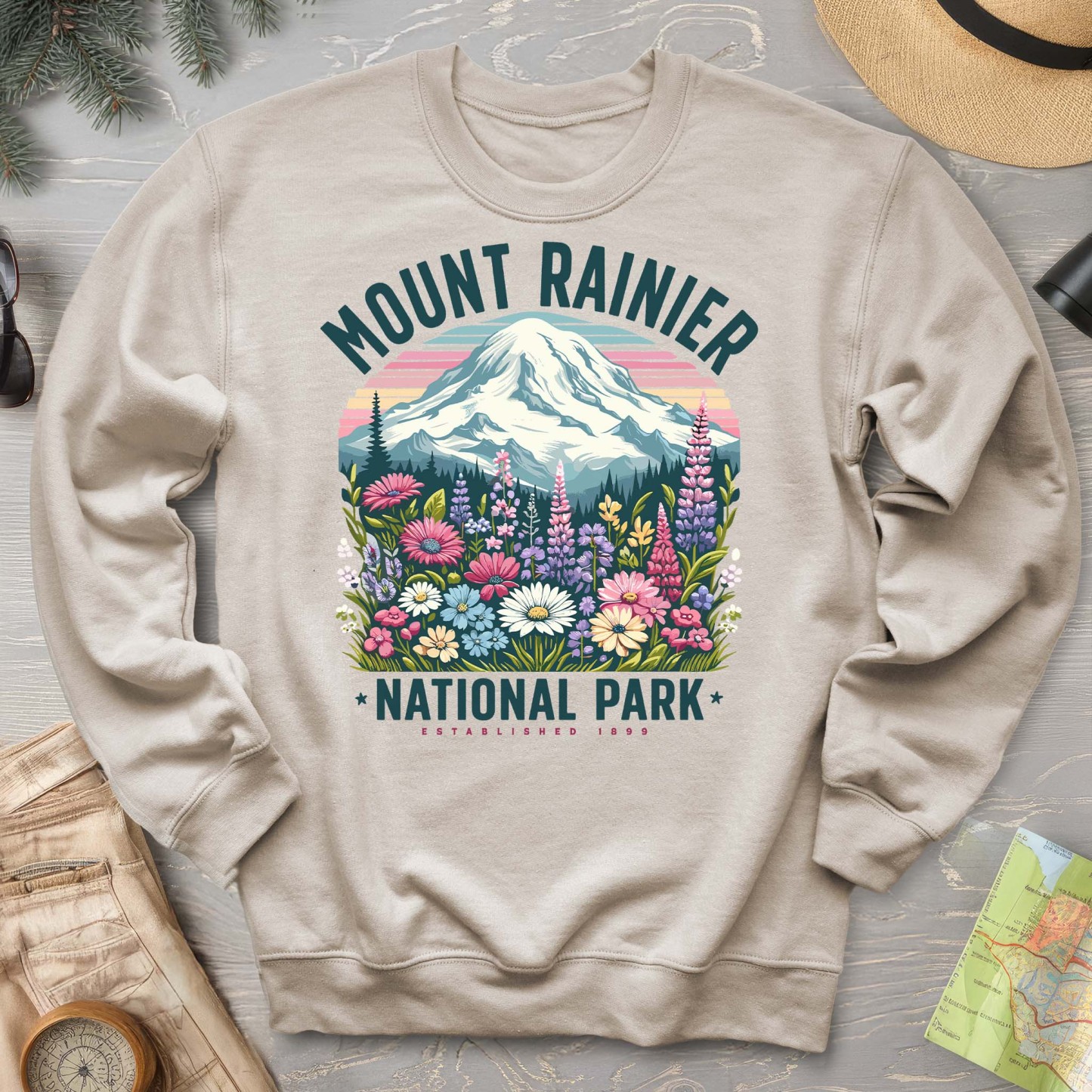 Celebrate the vibrant beauty of Mount Rainier’s wildflowers with this cozy sweatshirt. Perfect for adventures or lounging, it brings a splash of nature’s charm to your everyday style. Soft, comfy, and full of playful spirit—wear your love for the great outdoors wherever you go!