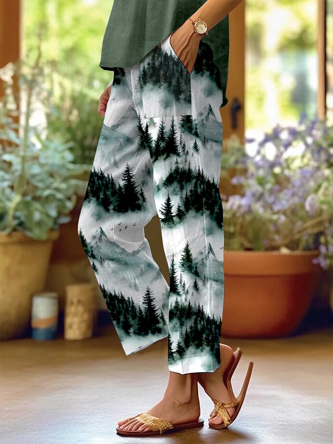 Women's Forest Floral Print Casual Pants (With Pockets)