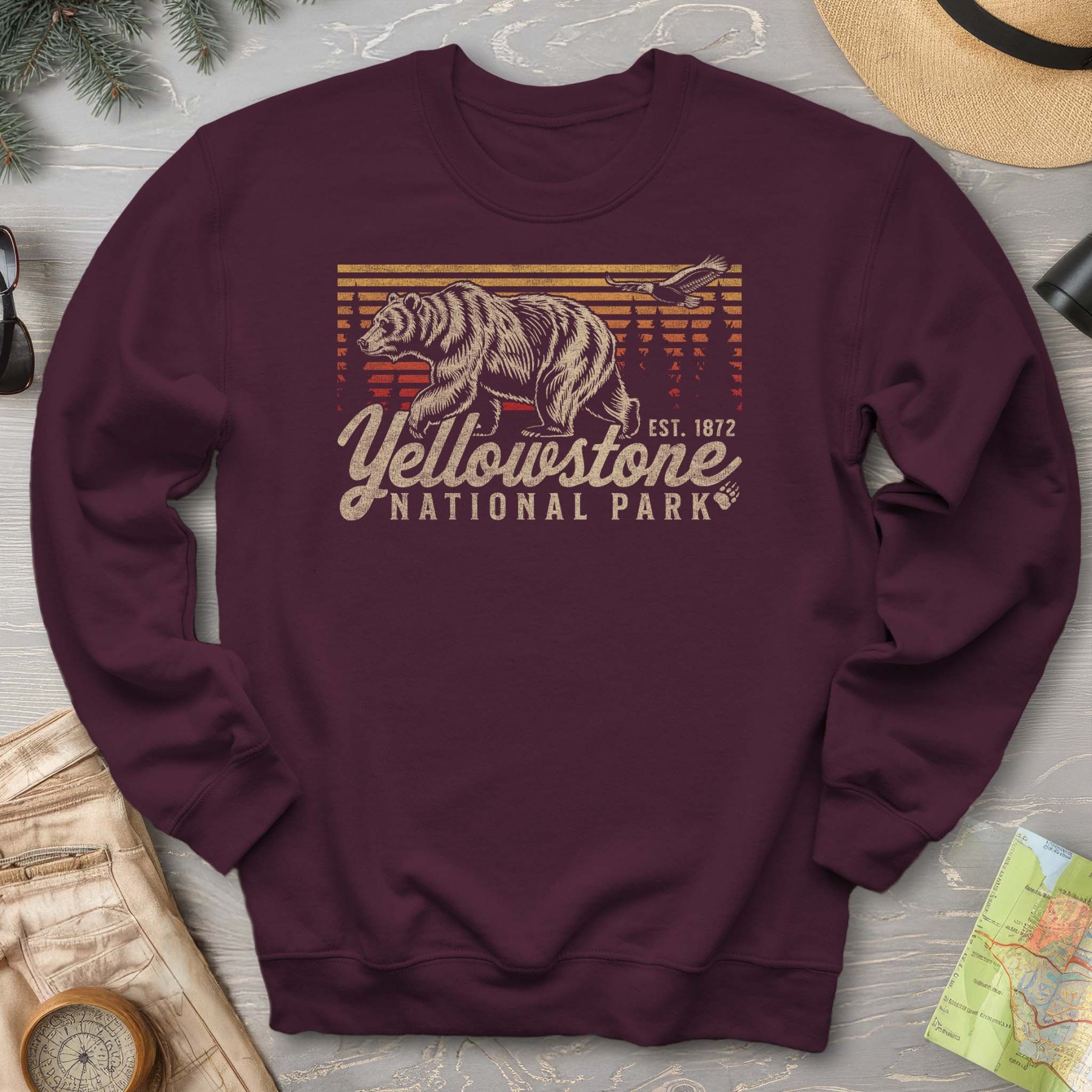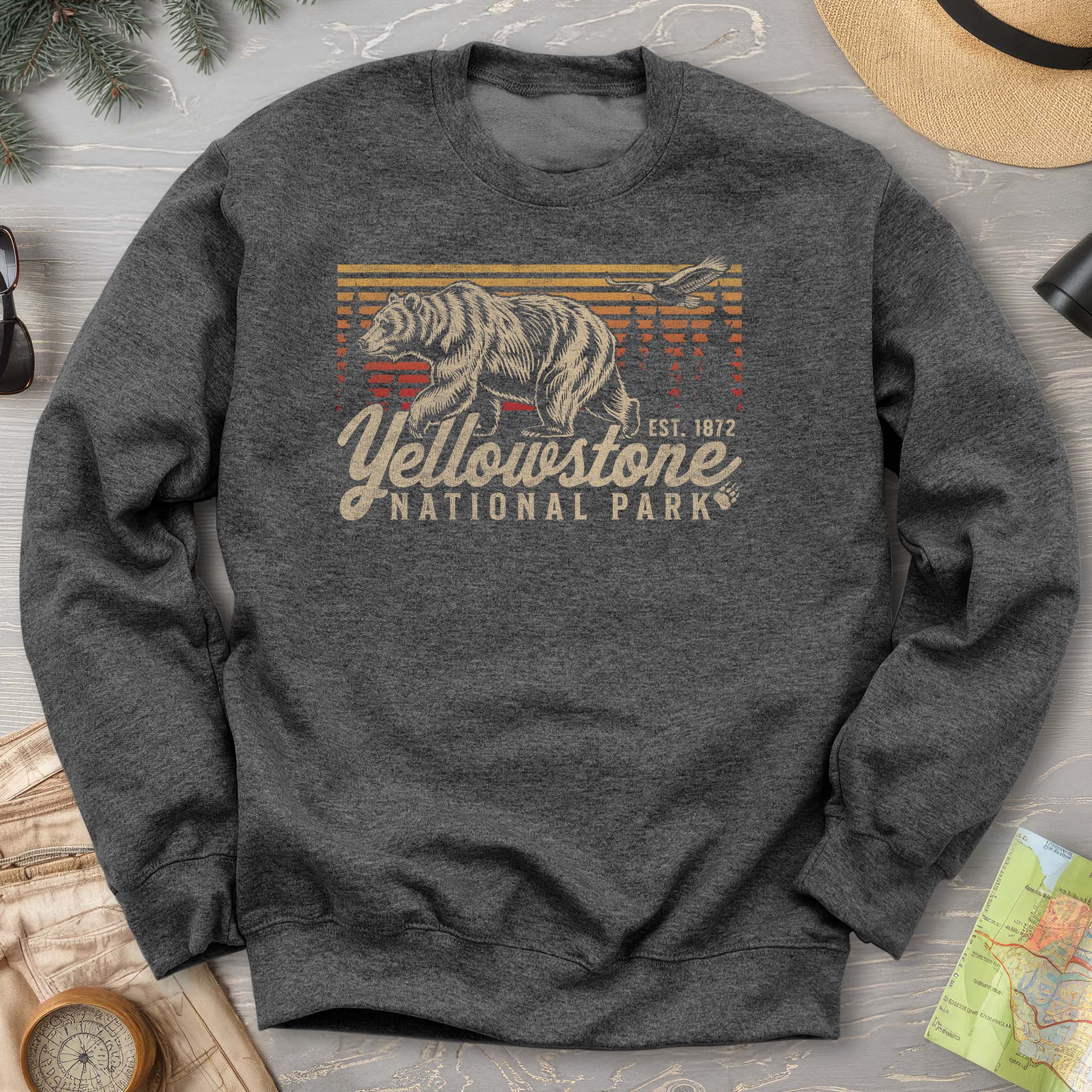 Yellowstone National Park "Vintage Sunset Bear" Sweatshirt